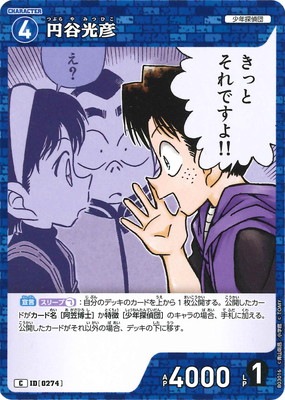 カードの能力【宣言】【スリープ】:自分のデッキのカードを上から1枚公開する。公開したカードが?カード名[阿笠博士]?か?特徴[少年探偵団]?のキャラの場合、手札に加える。公開したカードがそれ以外の場合、デッキの下に移す。