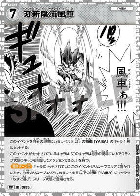カードの能力このイベントを自分の現場にいるレベル8以上の?特徴[YAIBA]?のキャラ1枚にセットする。